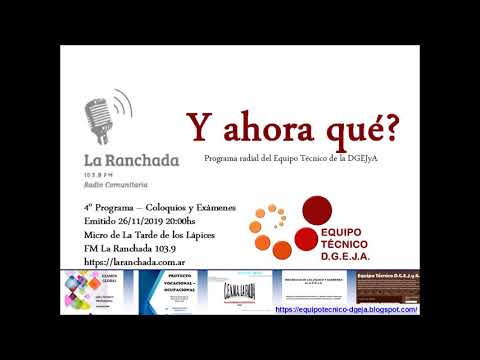 4° Programa: Coloquios y Exámenes en la EDJA; emitido el 26/11/2019 20:00hs como micro del programa La Tarde de los Lápices por FM La Ranchada 103.9